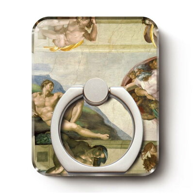 スマホリング ミケランジェロ アダムの想像 iPadmini Xperia10iii おしゃれ バンカーリング クリアケース取付 iPhone12Promax 落下 防止 落下防止 フィンガーリング スタンド タブレット リングホルダー デザイン