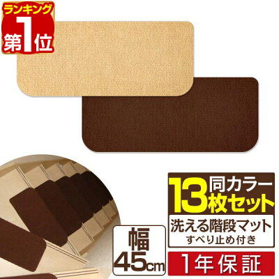 1年保証 階段マット 滑り止め マット 大判サイズ 45×20cm 幅広 13枚組 階段 転倒防止 安全 ケガ防止 吸着 吸着マット 洗える 階段用 ペット 滑り止め 防音 キズ防止 タイルカーペット すべり止め マット すべり止め付階段マット ベージュ ブラウン ■[送料無料]