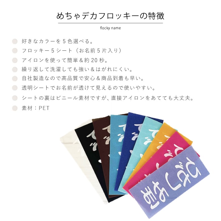 めちゃデカ!フロッキー 縦書き 5片 送料無料 選べる5色 お名前フロッキー 名入れ お名前シール 布用 布 洋服 洗濯 アイロン お名前シール アイロン シール 転写 靴下 子供 名前 入園 幼稚園 保育園 老人ホーム 介護施設 ハンドメイド 【楽ギフ_名入れ】only @