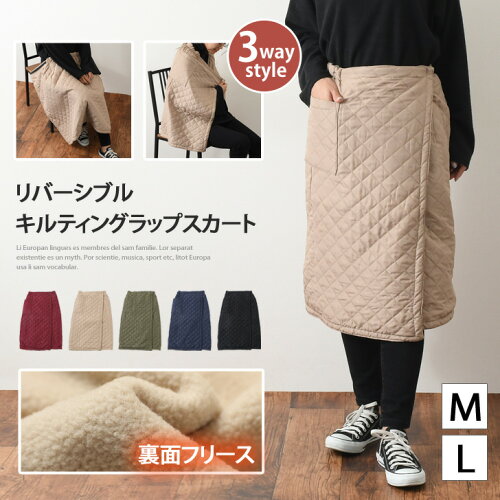 3way 裏フリース キルティング リバーシブルラップスカート レディース ボトムス 防寒 ロング ポケット アウトドア 暖かい あったか 巻きスカート ミモレ丈 裏起毛 ボア 大きいサイズ ロングスカート 寒さ対策